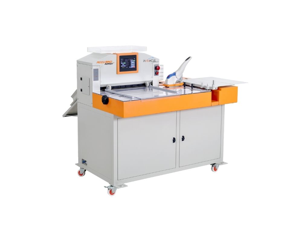 AccuBind Adroit 401 automates V-shape punching, cutting, and stapling for photo books.